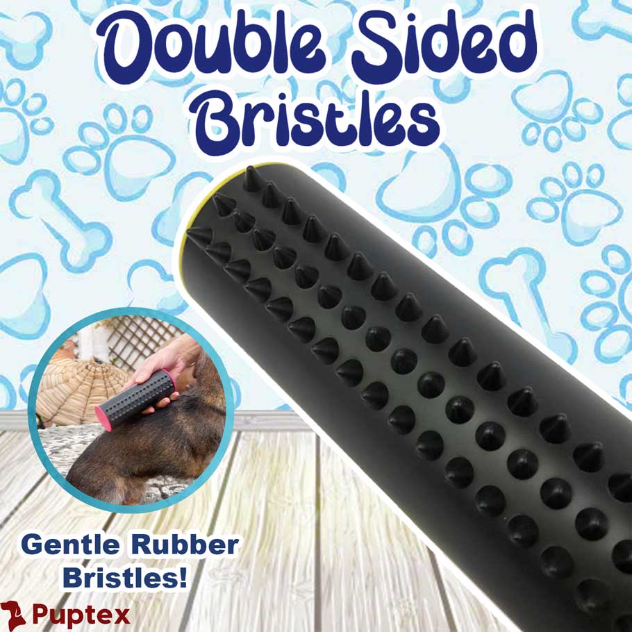 The backside of the Groomy™ Deshedding Brush is made of rubber bristles that are great for lathering shampoo and topical oils after you've safely removed the fur from your pet!