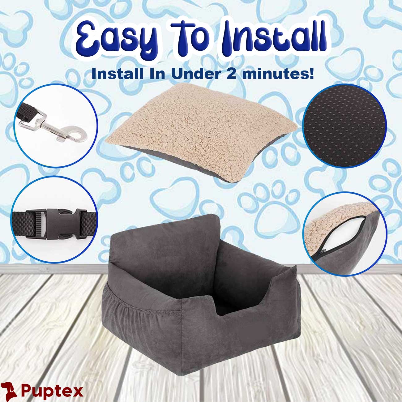 The plush PP cotton not only keeps your pup super comfy- it's also easy to clean & comes with a removable cushion as well as FREE safety belt that can attach to your doggos harness or collar!